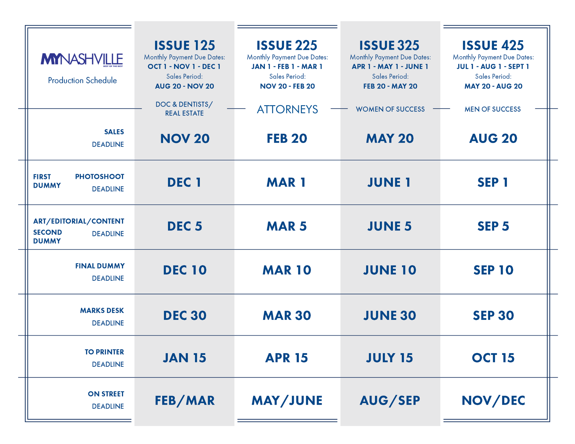 2025 PRODUCTION SCHEDULE